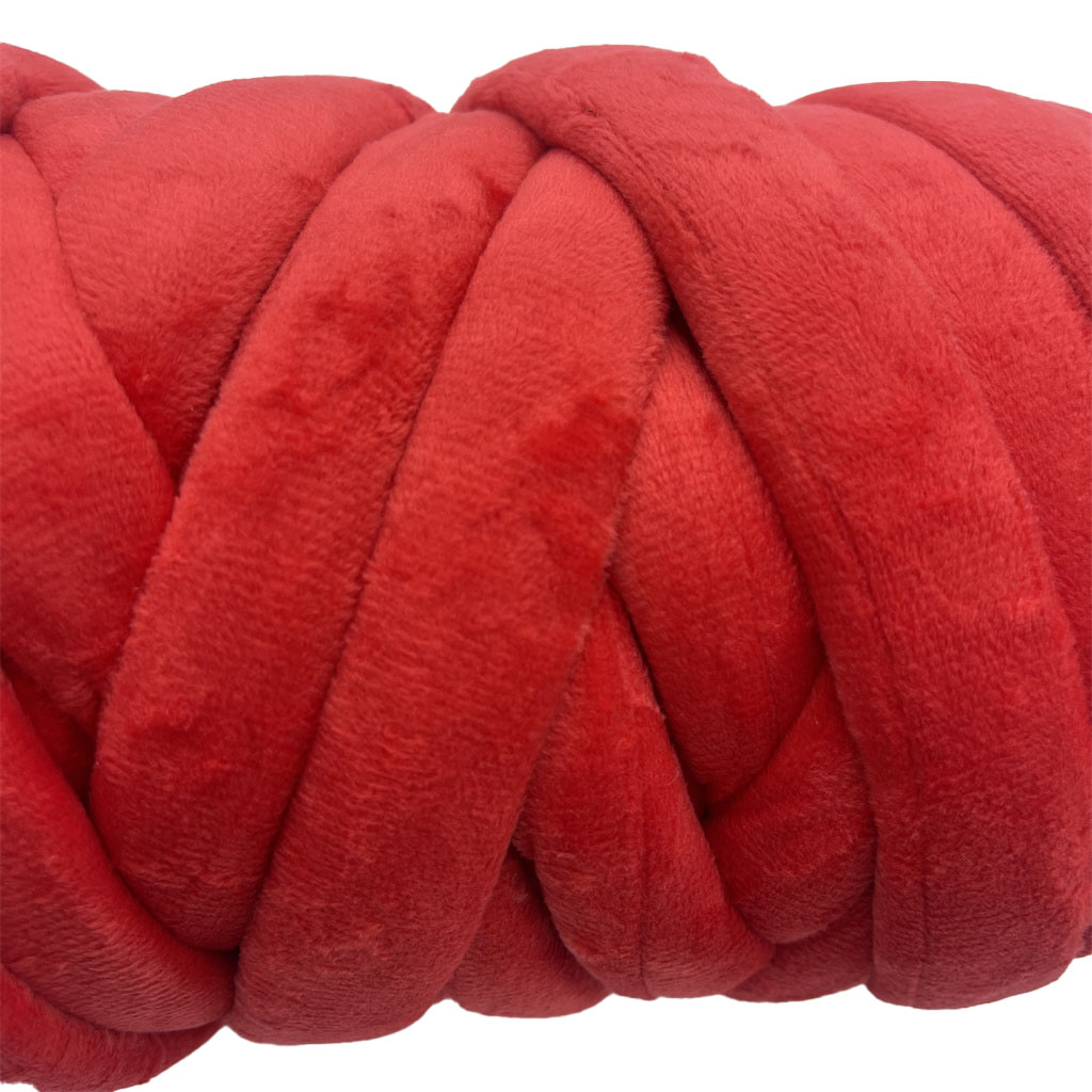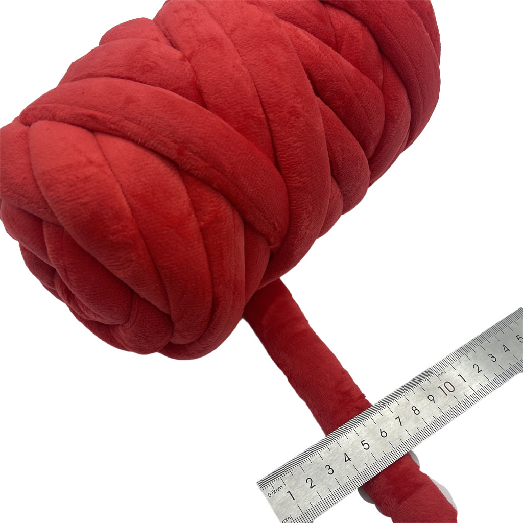 This product is a wholesale factory-produced polyester fancy yarn, specifically designed for finger knitting applications. The yarn is constructed as a velvet tube with a consistent diameter of 2cm, giving it a substantial, three-dimensional form. Its composition is a blend of polyester and cotton, combining the structural stability and resilience of polyester with the natural touch of cotton. This material combination contributes to the yarn's defined shape and tactile properties. The pre-formed tubular structure facilitates the finger knitting process, allowing for the efficient creation of textured fabrics and accessories without the need for traditional tools. Its dimensions and construction make it suitable for producing items with a voluminous and soft texture.