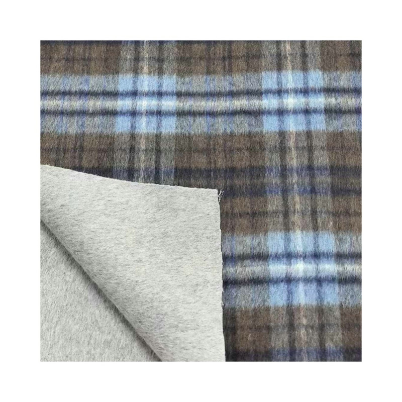 This fabric, designated as article ZZH25003, is a heavyweight woven textile composed of 50% wool and 50% other fibers. With a mass per unit area of 950g/m, the material demonstrates substantial density and weight. The surface features a plaid pattern combining blue and brown tones in a structured grid formation. This weight category contributes to the fabric's wind resistance and insulation capacity. The wool blend composition influences the textile's thermal regulation properties. These technical specifications make this woven fabric applicable for winter overcoats where substantial protection from cold weather conditions is required.