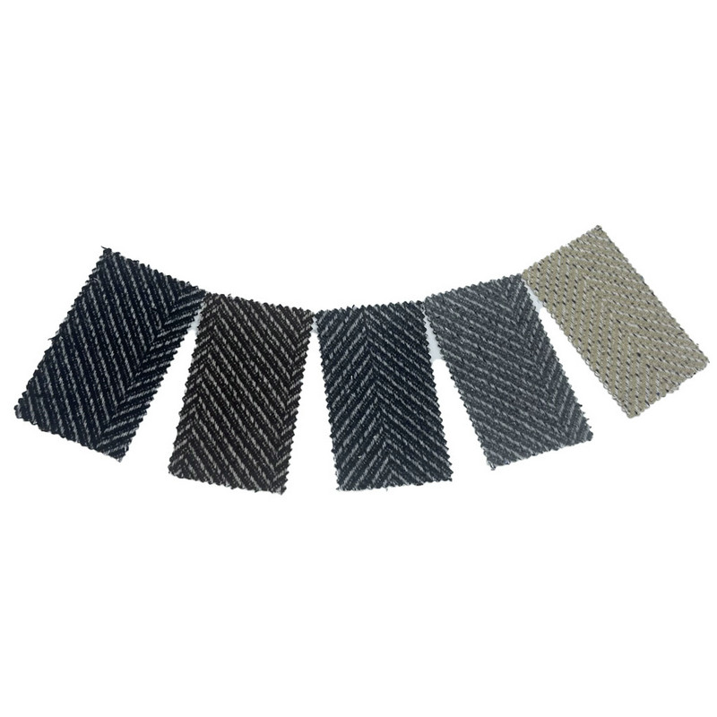 This fabric, designated as article 4134, is a jacquard woven tweed textile composed of 30% wool and 70% other fibers. With a mass per unit area of 530 g/m, it presents a medium-to-heavy weight construction. The fabric features a herringbone pattern created through the jacquard weaving process, which forms precise V-shaped motifs across the textile surface. This manufacturing technique combines the visual definition of jacquard with the structural durability of the herringbone weave. The wool blend composition contributes to the fabric's resilience and abrasion resistance. These technical characteristics result in a material with geometric pattern clarity and structural integrity, making it applicable for car seat manufacturing where both aesthetic articulation and long-term performance are required.